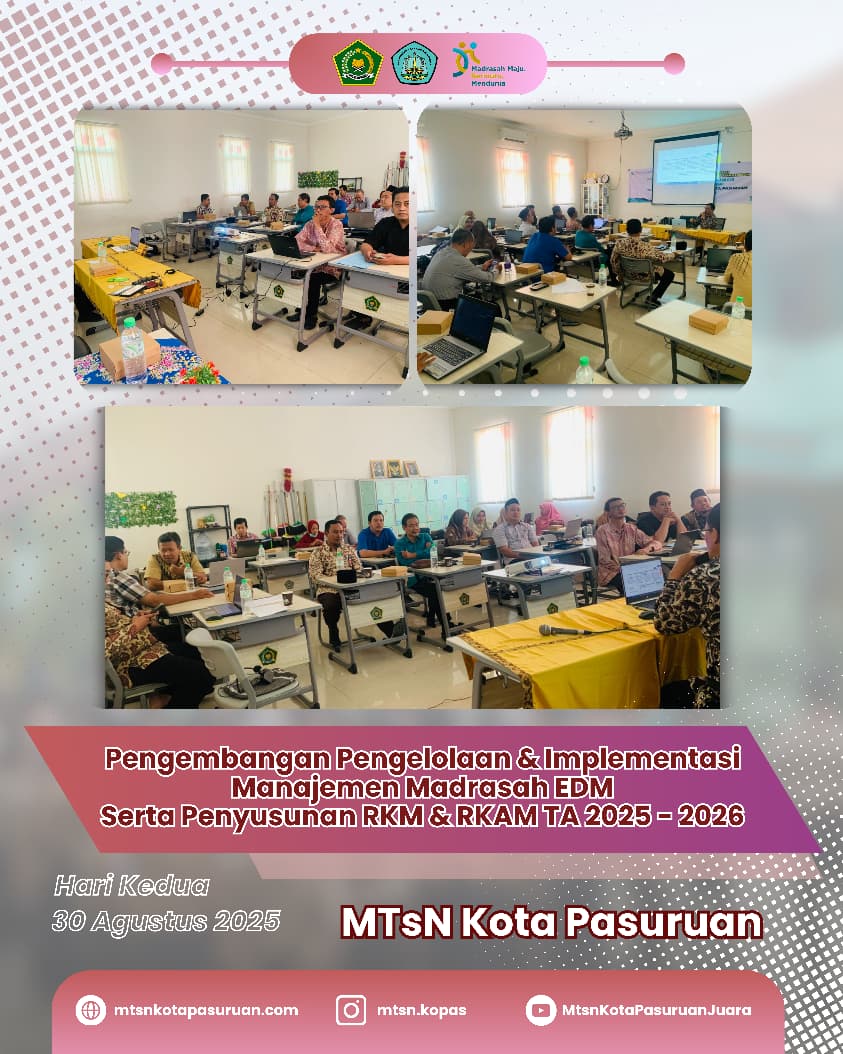 Keterlibatan aktif dari semua pihak, termasuk Komite Madrasah, dalam proses EDM ini menjadi indikasi kuat komitmen MTsN Kota Pasuruan untuk mewujudkan tata kelola madrasah yang akuntabel, partisipatif, dan berorientasi pada mutu berkelanjutan, sesuai dengan slogan "Madrasah Hebat Bermartabat."