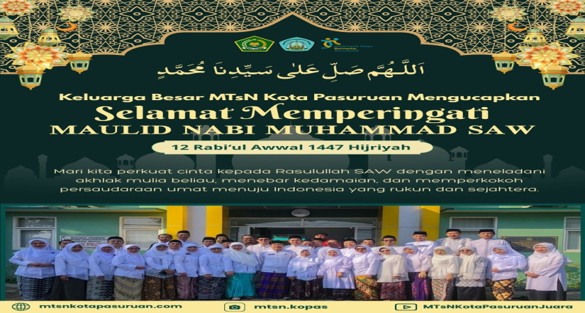 Dengan suksesnya peringatan Maulid Nabi Muhammad SAW ini, MTsN Kota Pasuruan berharap seluruh warga madrasah dapat mengambil hikmah, meningkatkan keimanan dan ketakwaan, serta senantiasa berusaha mencontoh sifat-sifat mulia Rasulullah SAW dalam mewujudkan "Madrasah Hebat Bermartabat."